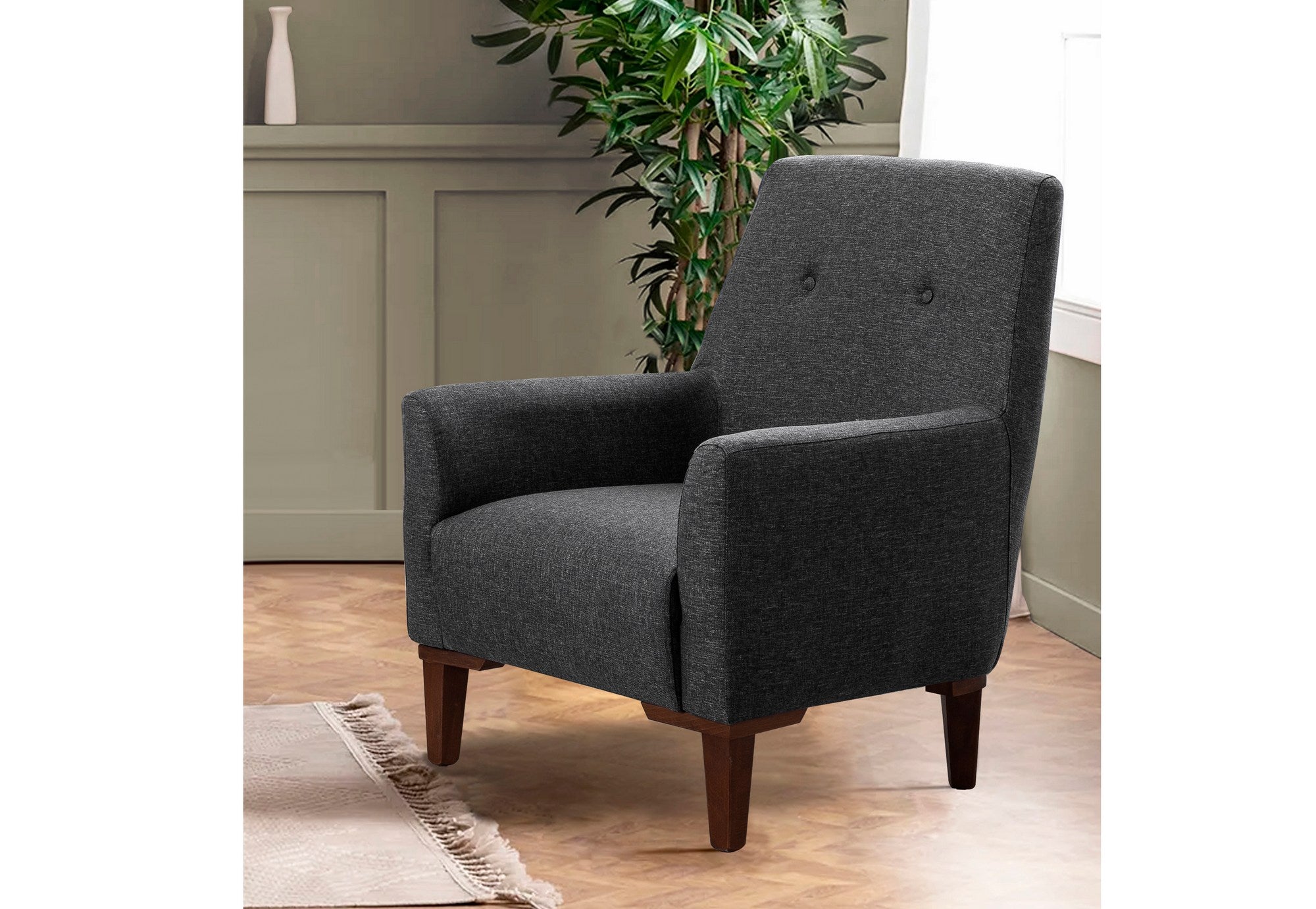 Njut av lyx och komfort med vår utsökta öronlappsfåtölj. Denna eleganta möbel kommer inte bara att lyfta stilen i ditt vardagsrum utan också ge dig en mysig plats att koppla av och varva ner efter en lång dag. Kombinationen av antracit- och valnötsfärger ger en sofistikerad touch till alla rum och gör den till ett tidlöst tillskott till din heminredning.