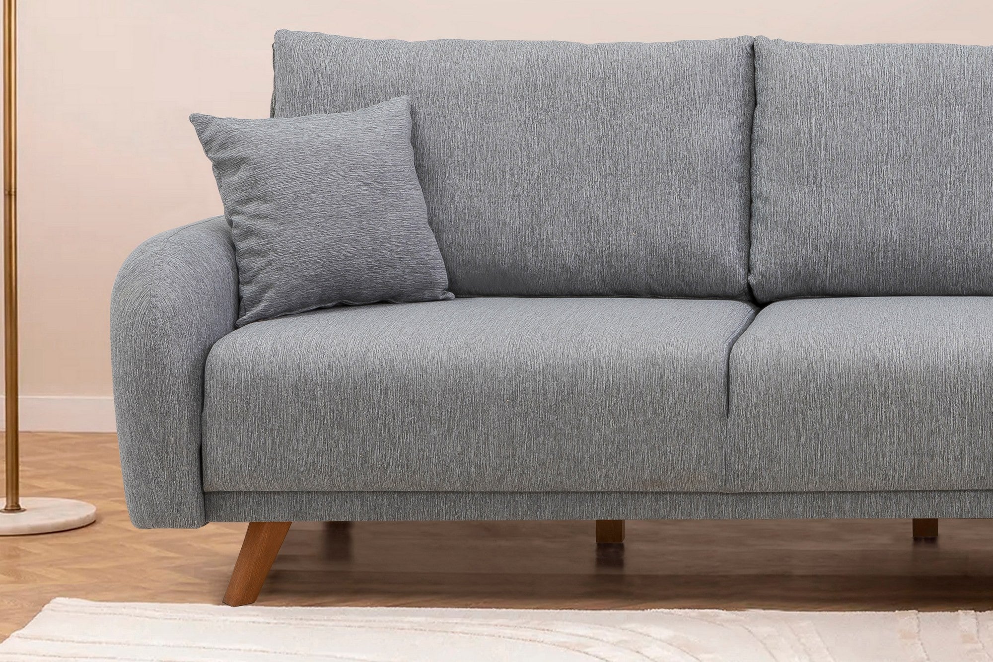 Med sin smarta design förvandlas denna soffa enkelt till en rymlig säng som erbjuder en bekväm sovplats för dina gäster. De generösa måtten på 237 cm bredd, 90 cm höjd och 185 cm djup gör den perfekt för alla hörn i vardagsrummet.